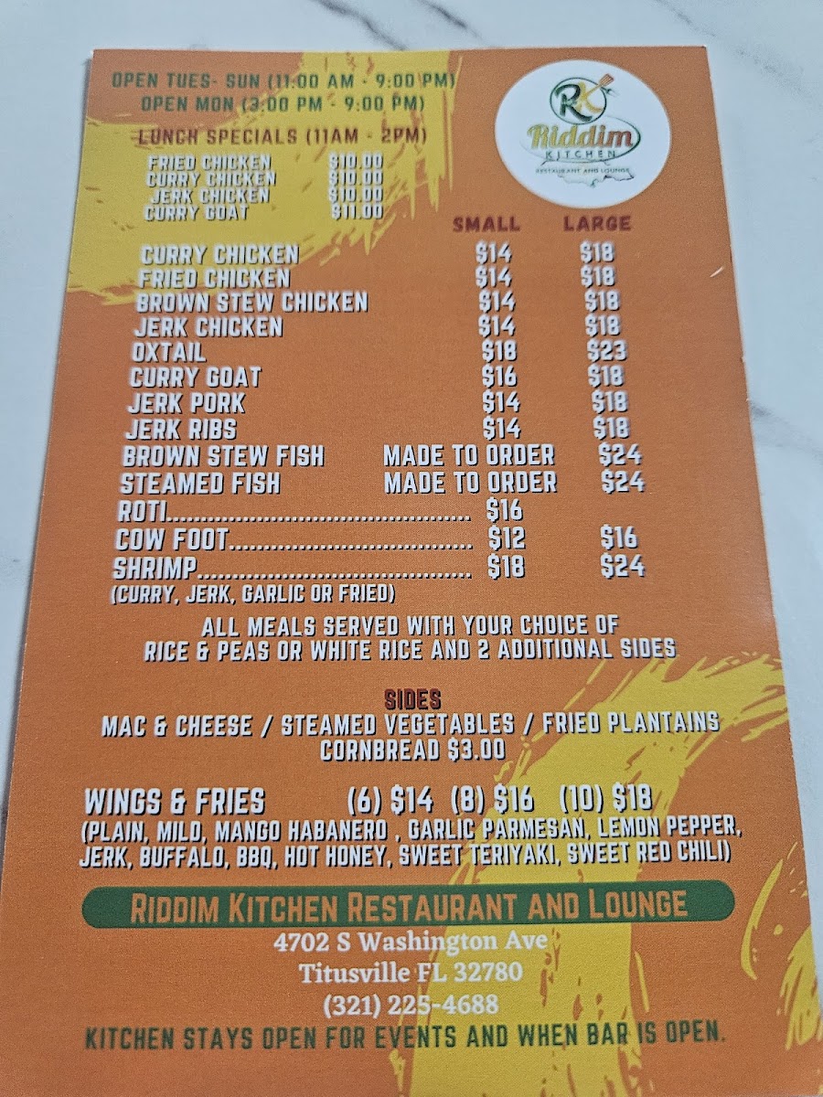 Step right up and get ready to dive into the flavors waiting for you at Riddim Kitchen Restaurant And Lounge Menu. From the first glance, it’s clear this place doesn’t shy away from bold, mouthwatering choices. Whether you’re craving something hearty, spicy, or just downright comforting, there’s a dish here that feels made for the moment. You’ll notice the menu flows effortlessly between fresh appetizers that set the tone and mains that hit just the right note of satisfaction, all while keeping things playful and unexpected. The drinks list doesn’t lag behind either-perfect for pairing with anything from a zesty plate of wings to a more indulgent entrée. It’s the kind of menu that invites you to wander a little, try something new, and maybe even discover a new favorite along the way. With each section, you can almost imagine the laughter and chatter around you, the clinking of glasses, and that easygoing vibe that makes picking a dish as enjoyable as tasting it. Everything feels approachable yet full of character, giving you the freedom to explore and enjoy every bite.